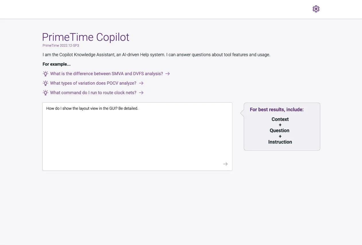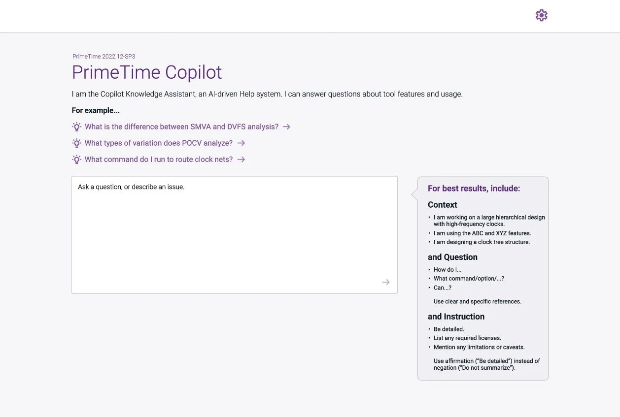 Rather than redesign the entire interface, I focused on one high-leverage intervention: a contextual guidance panel that coached users toward better inputs without interrupting their flow. The goal was to make expert behavior the default, not the exception. The design moved from 'ask anything' to 'ask better.'
