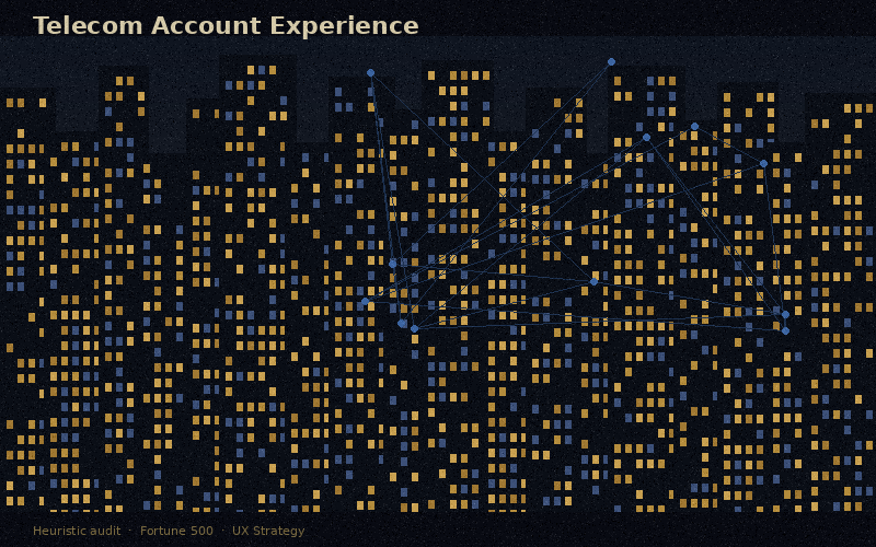 Heuristic audit of a Fortune 500 telecom platform that mapped three user flows and delivered a prioritized strategic roadmap to leadership.