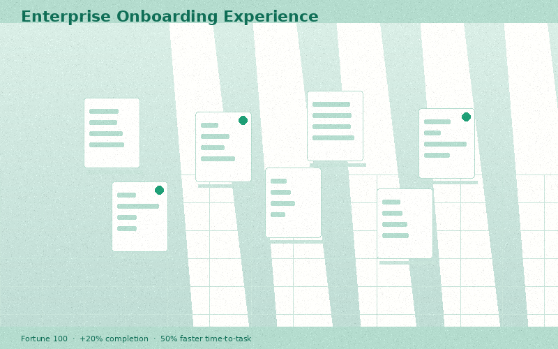 Redesigned a Fortune 100 onboarding flow with a systems-level inbox fix — increasing completion 20% and cutting time-to-task by 50%.